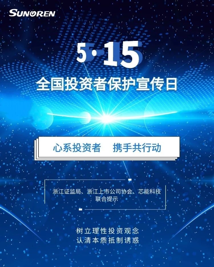 “5·15”心系投资者,携手共行动 2021-05-15 00:00:00 浙江芯能光伏科技股份有限公司 浏览次数 11080 上一条一起学新法:新设投保专章,夯实制度保障 下一条“3·15”保护投资者合法权益,芯能在行动