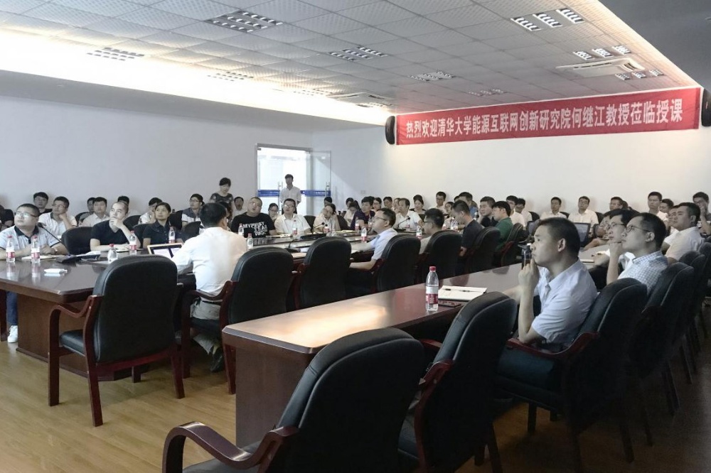 2018年8月9日,芯能科技邀请清华大学能源互联网创新研究院何继江博士莅临公司举办光伏政策研判与市场机会分析讲座。公司电站事业部主管以上人员,其他各职能部门经理以上人员以及部分青年骨干共计80余人参与了本次讲座。